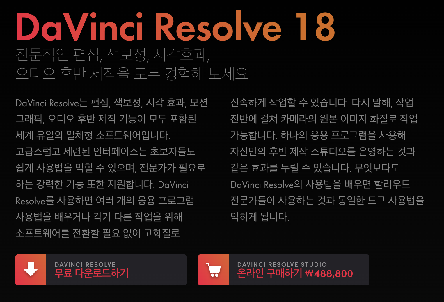 https://www.blackmagicdesign.com/kr/products/davinciresolve
