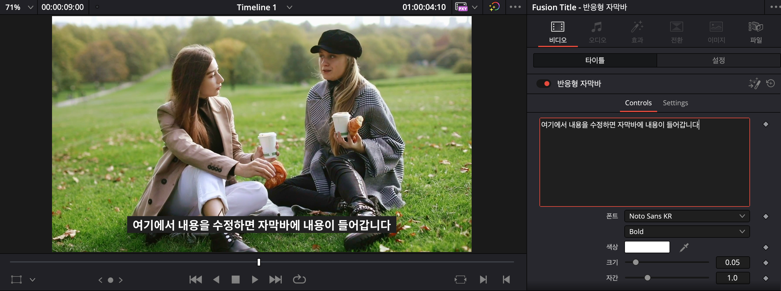 다빈치 리졸브 반응형 자막바 나눔합니다