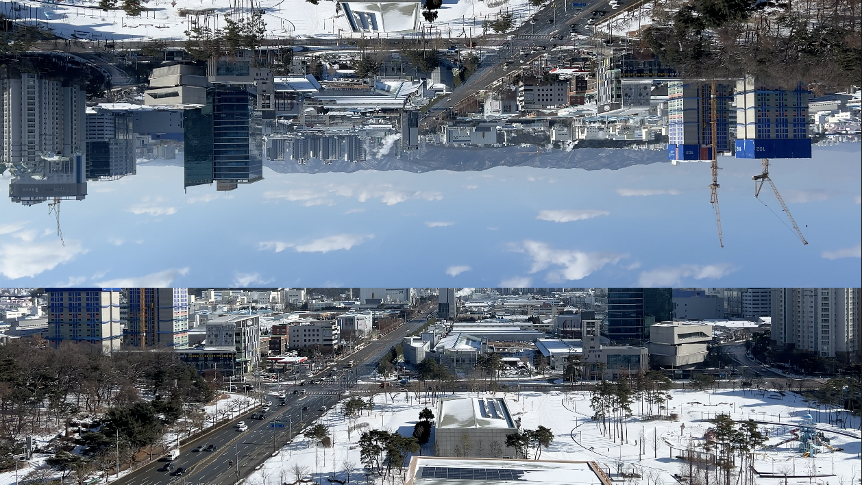 영상 클립을 잘라낸 후에 위아래로 서로 맞대는 것이 포인트입니다.