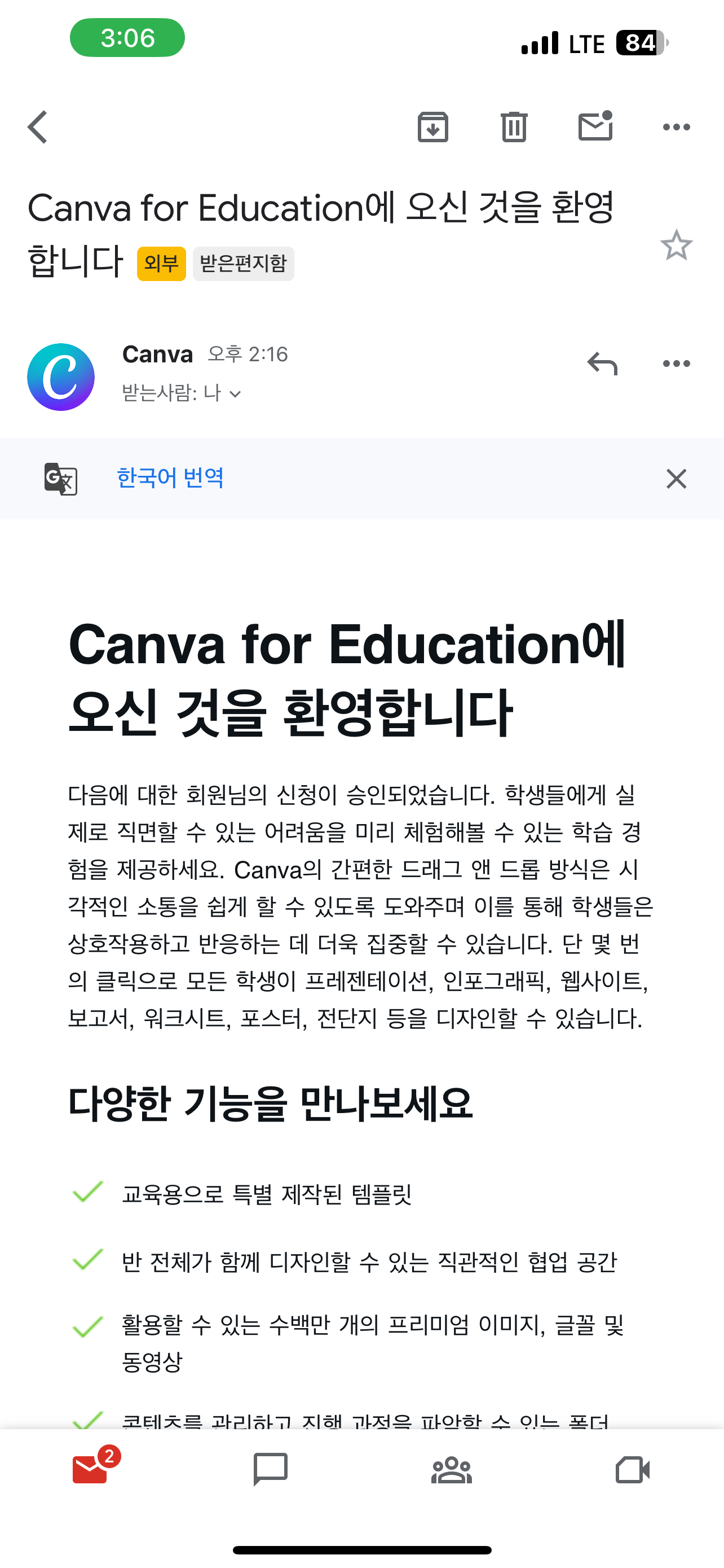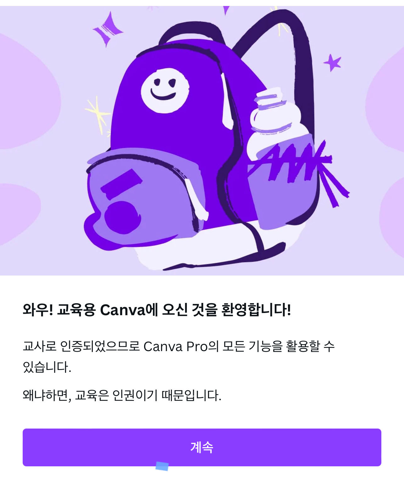 교육용으로 인증받기 위해서 필요한 절차를 알아봤습니다. 캔바에서 며칠의 소요 기간 이후 결과를 알려줍니다.