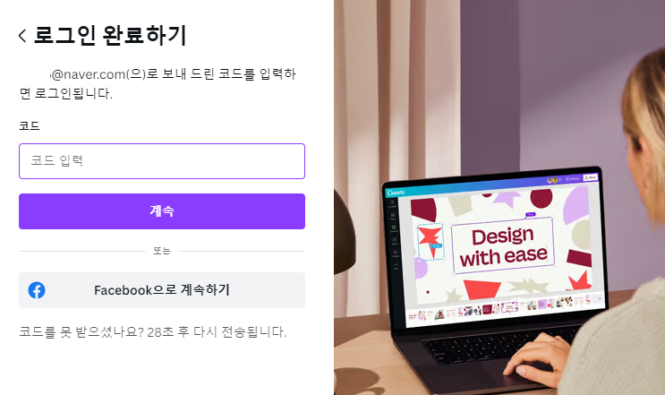 그러면 캔바에서 입력한 네이버 메일 주소로 코드를 보냅니다.