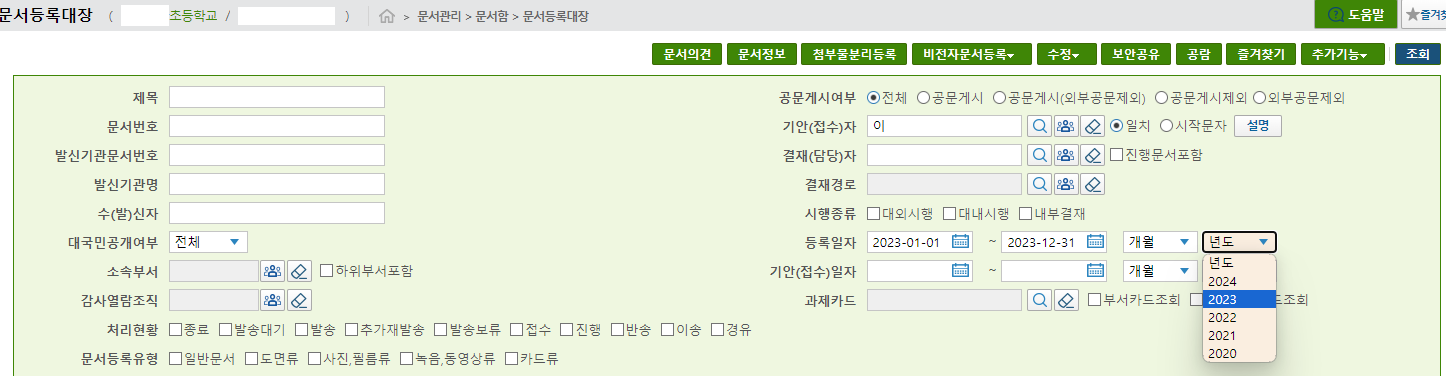 - K-에듀파인에 로그인한 후, [문서등록대장] 메뉴로 이동합니다.