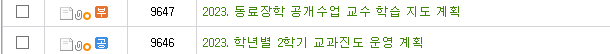 이렇게 검색하면 전임자가 기안하고 결재받은 공문들을 확인할 수 있습니다. 예를 들어, 동료장학 수업계획이나 2학기 진도계획과 같은 중요한 공문들이 있었다면, 이를 참고하여 유사한 내용을 기안할 수 있습니다.