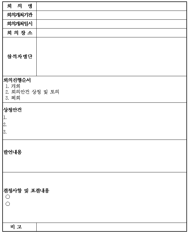 제가 실제로 사용하는 회의록 양식을 아래와 같이 공유하고자 합니다.