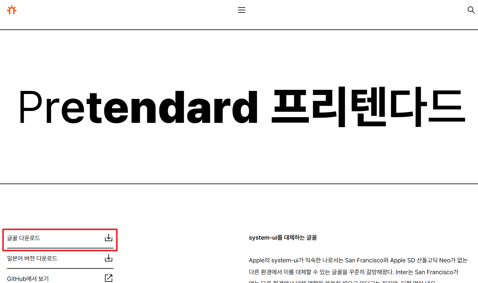 프리텐다드 폰트는 직접 이 폰트를 제작한 길형진님 블로그나 깃허브에서 무료로 다운로드할 수 있습니다.