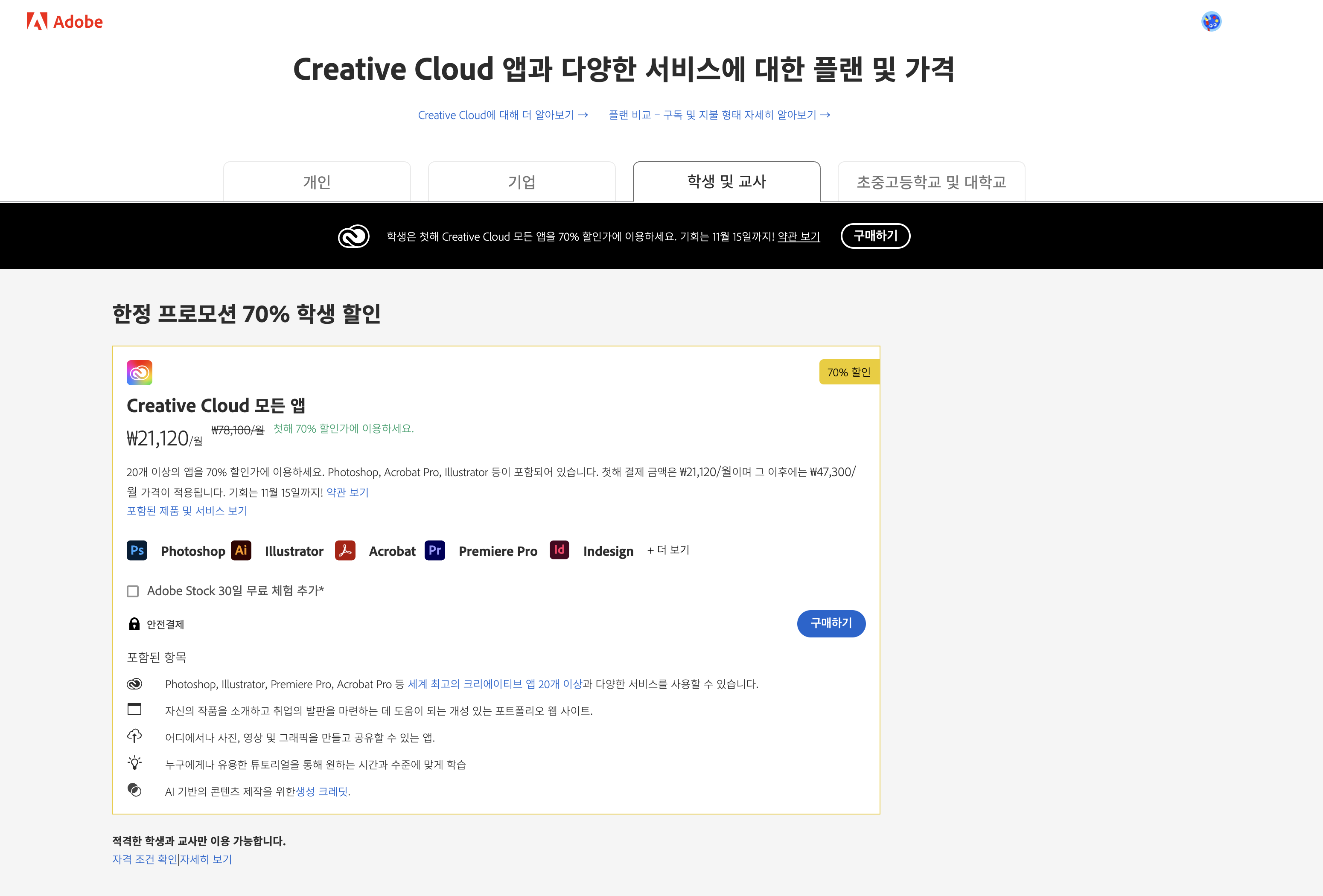 어도비 2024년 블랙프라이데이 교육 할인 결제 후기