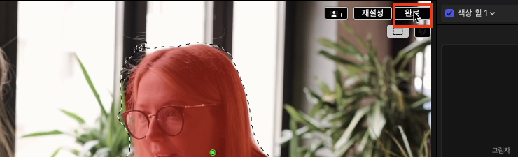 6. 분석 작업이 끝났다면 [완료] 버튼을 클릭하여 피사체 선택에서 벗어납니다.