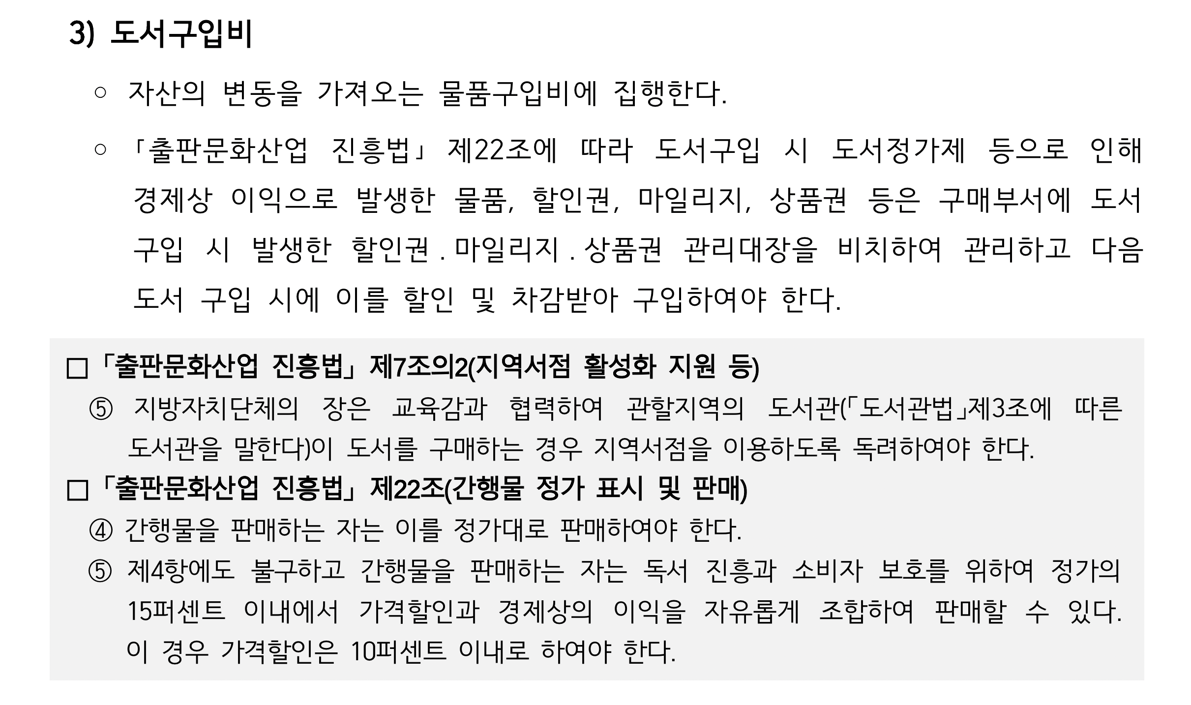 도서관 등에 비치하는 책들은 일종의 자산으로 여겨지기 때문에 도서구입비로 구입하셔야 합니다. 그에 비해 부서의 업무참고용 도서는 일반수용비에 해당됩니다.