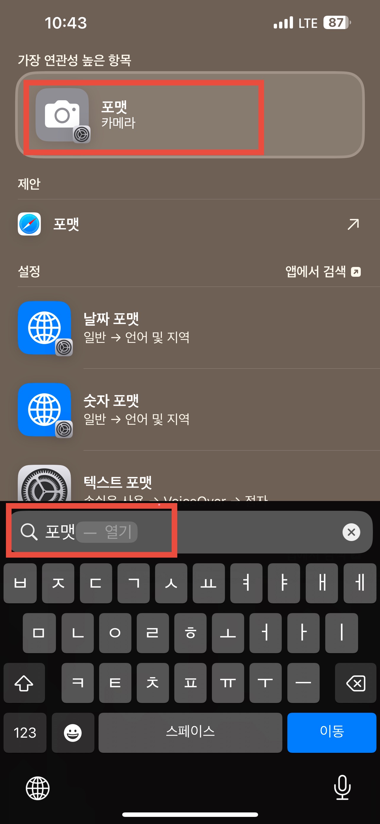 Step 1) 아이폰 자체 내부 검색에서 '포맷' 입력하기