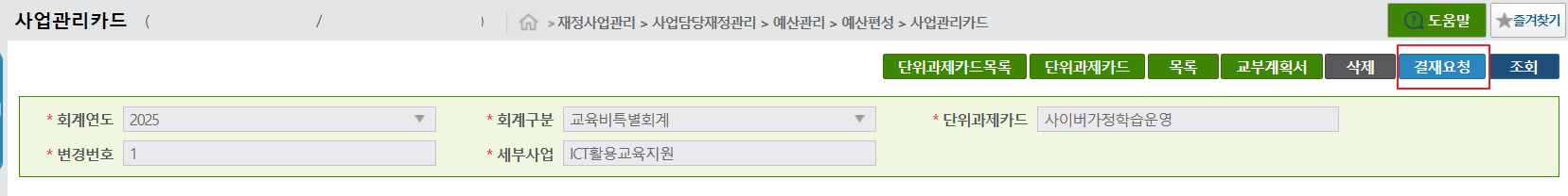 사업관리카드에서 [교부관리] 탭을 클릭하신 후 재배정/배부 (신청) 을 누르시면 됩니다.