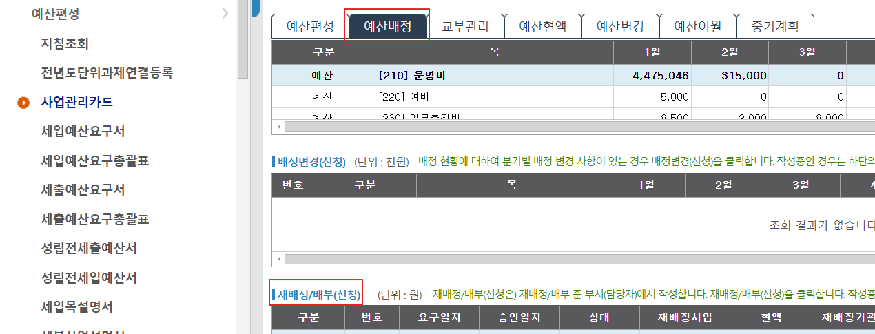사업비 재배정의 흐름