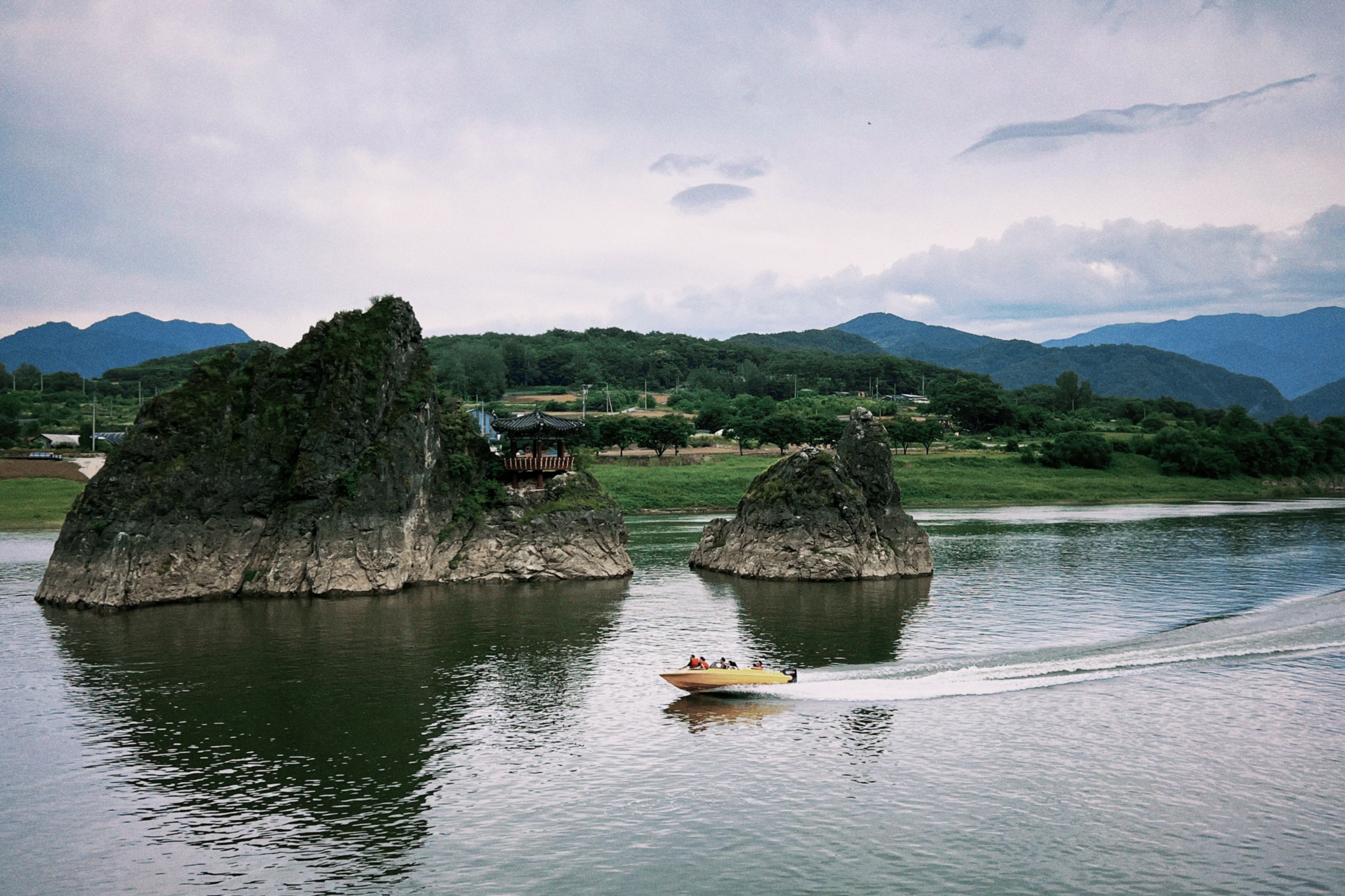 모터보트를 타며 강 위를 시원하게 달리는 사람들도 보였다.