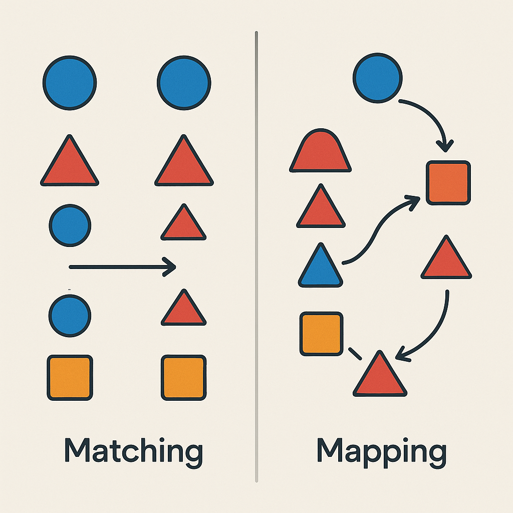 '매칭(Matching)'과 '매핑(Mapping)'은 비슷하게 들리지만, 사용되는 맥락과 의미에서 분명한 차이가 있습니다. 쉽게 설명해 드릴게요.