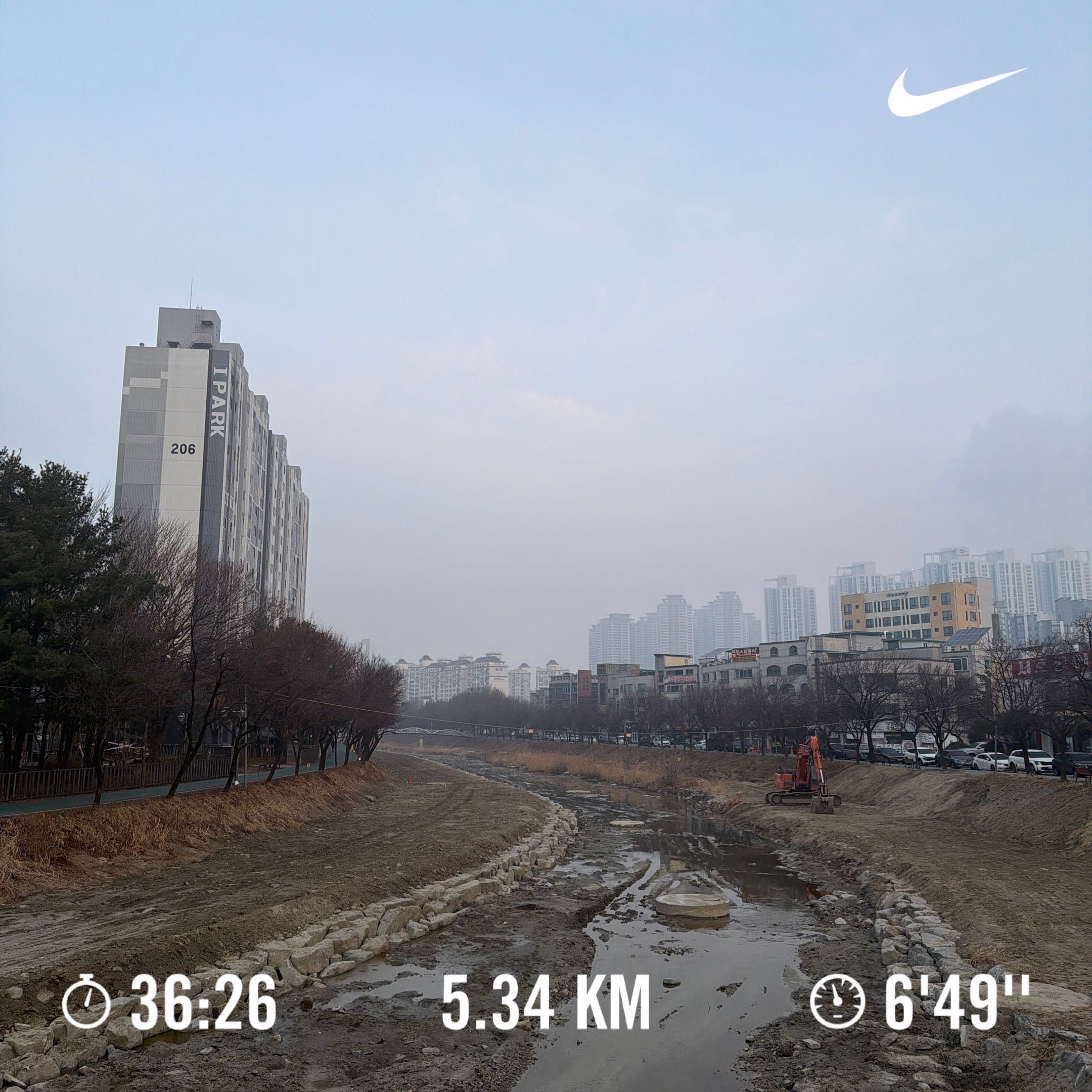 원래 오늘 스케줄은 3km 정도 가볍게 뛰며 컨디션을 회복하는 것이었습니다. 하지만 막상 노바블라스트 5를 신고 도로에 나서니 몸 상태가 생각보다 훨씬 괜찮았습니다. 결국 발걸음이 이끄는 대로 조금 더 늘려 5.34km를 달렸습니다.