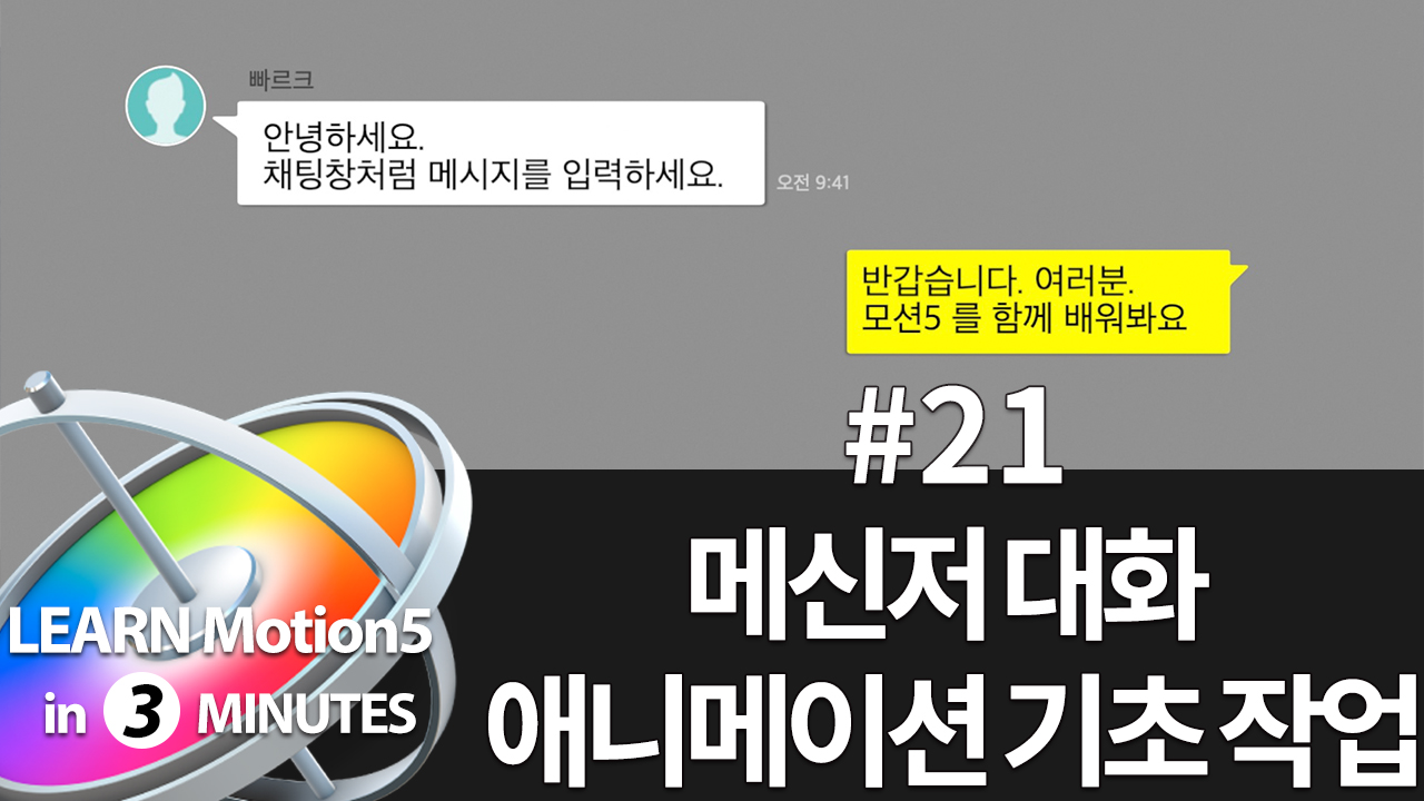 빠르크의 모션5 3분강좌 21강은 메신저 대화 애니메이션 기초 작업편입니다.