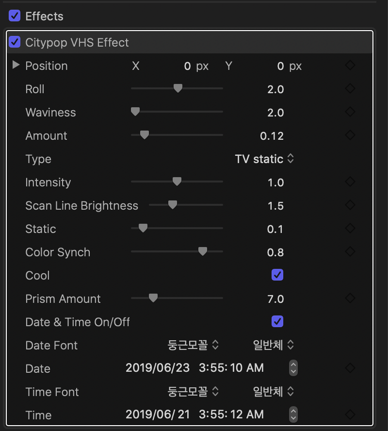 오늘은 시티팝 음악을 듣다가 삘을 받아 만든 80년대 느낌이 물씬 묻어나는 VHS 이펙트를 준비했습니다.