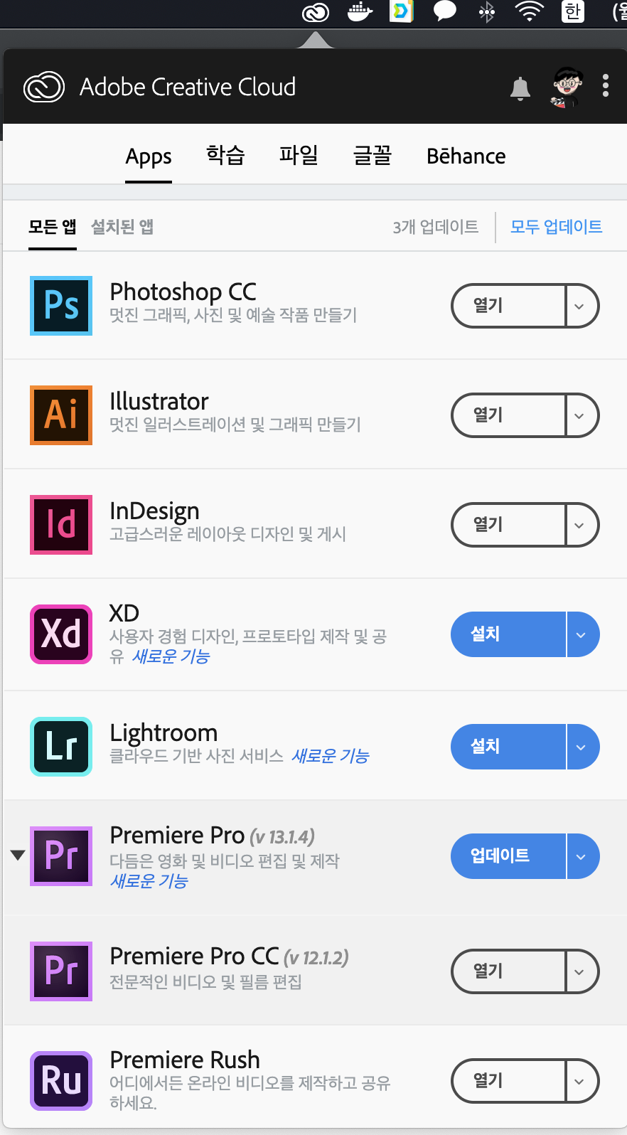 프로그램 설치/업데이트/실행/제거를 이 어도비 크리에이티브 클라우드 내에서 모두 다 할 수 있습니다. 어도비 CC 버전을 사용하신다면 필수적으로 설치해야 하는 프로그램입니다.