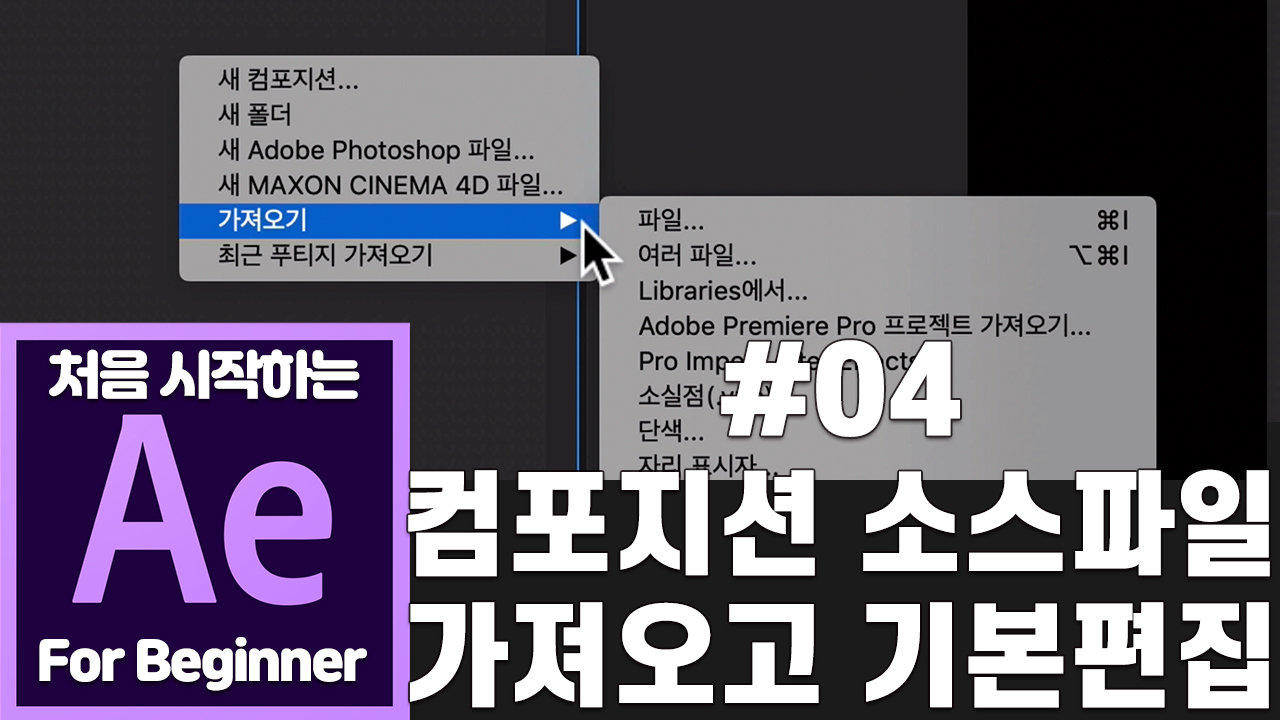 애프터이펙트 기초 강좌 04강 컴포지션에 소스 파일 가져오고 기본 편집하기