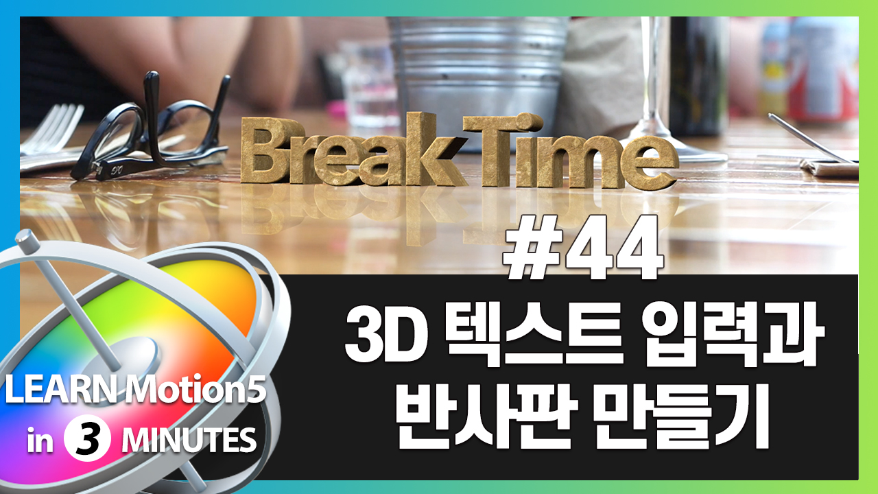 빠르크의 모션5 3분강좌 44강 3D 텍스트 입력과 반사판 만들기