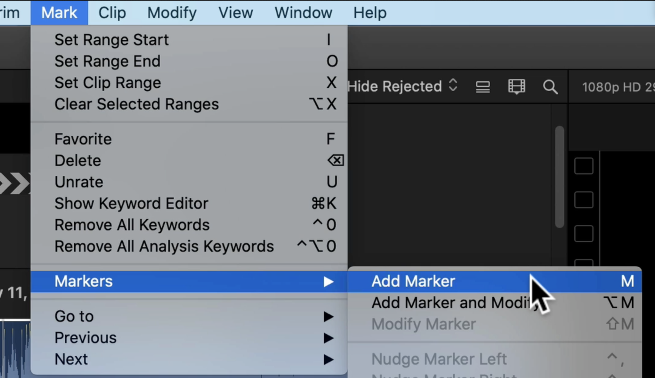 마커는 상단 메뉴에서도 추가할 수 있지만 보통은 단축키 M을 이용해 마커를 입력합니다.
