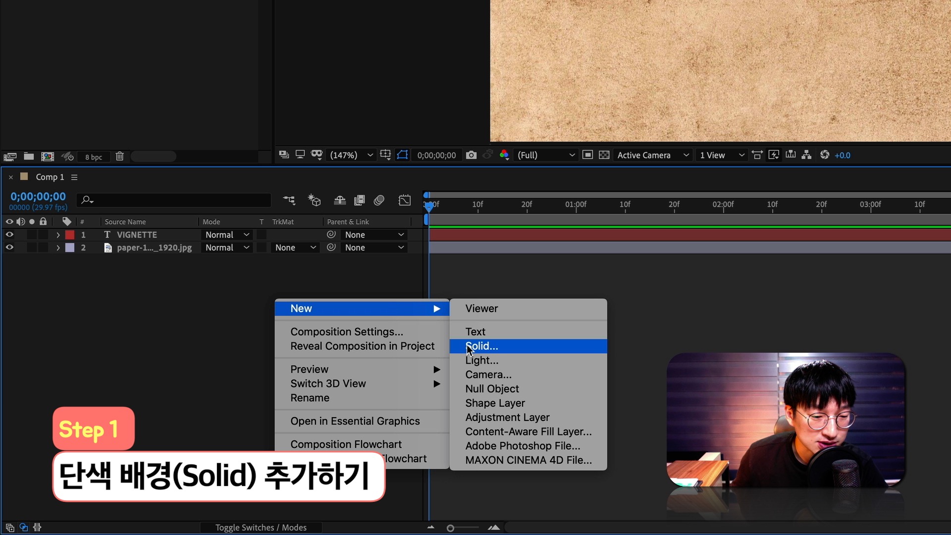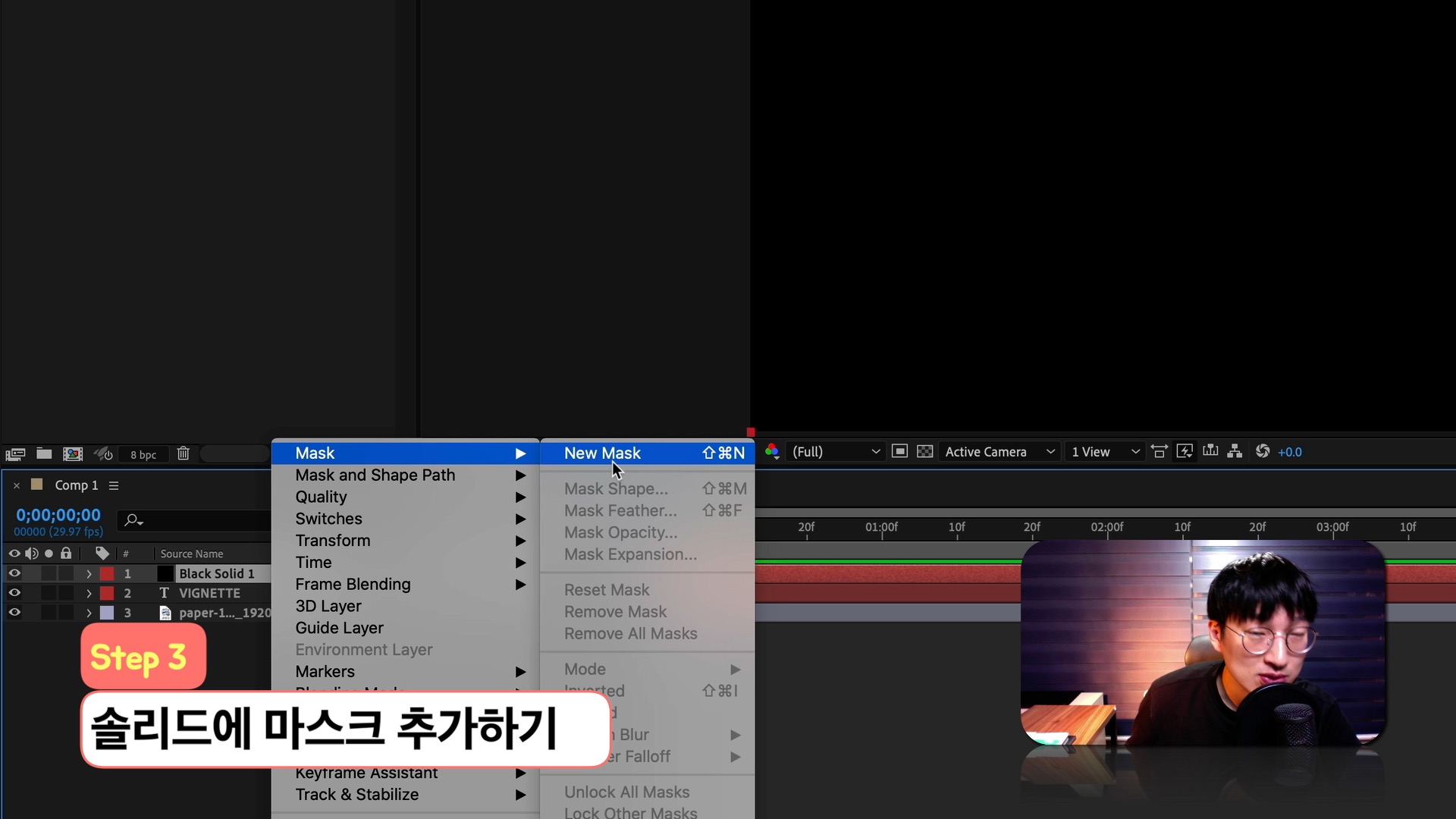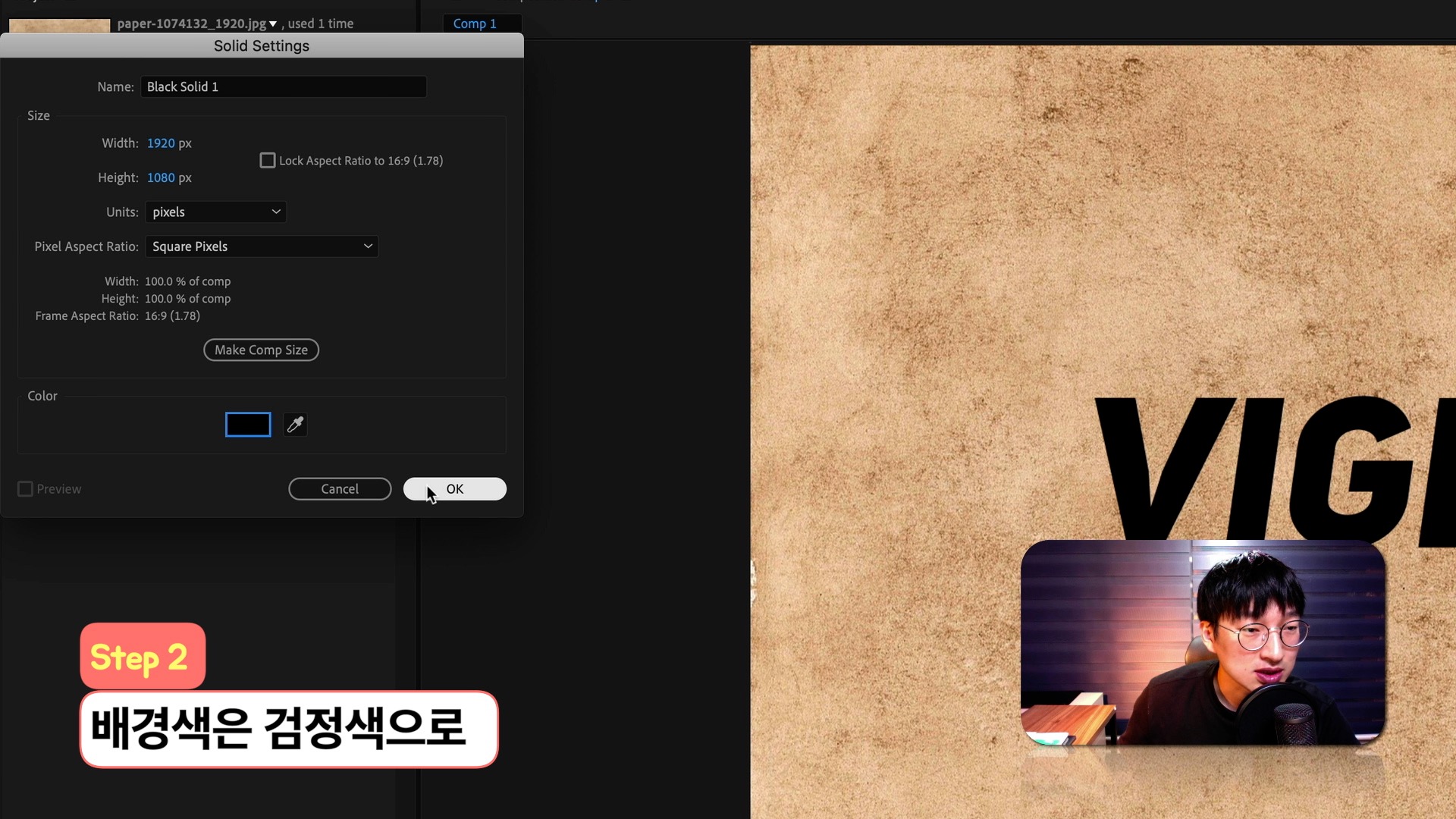 빠르크의 애프터이펙트 3분강좌 4강 가장자리를 어둡게 만드는 비네팅 효과 만들기