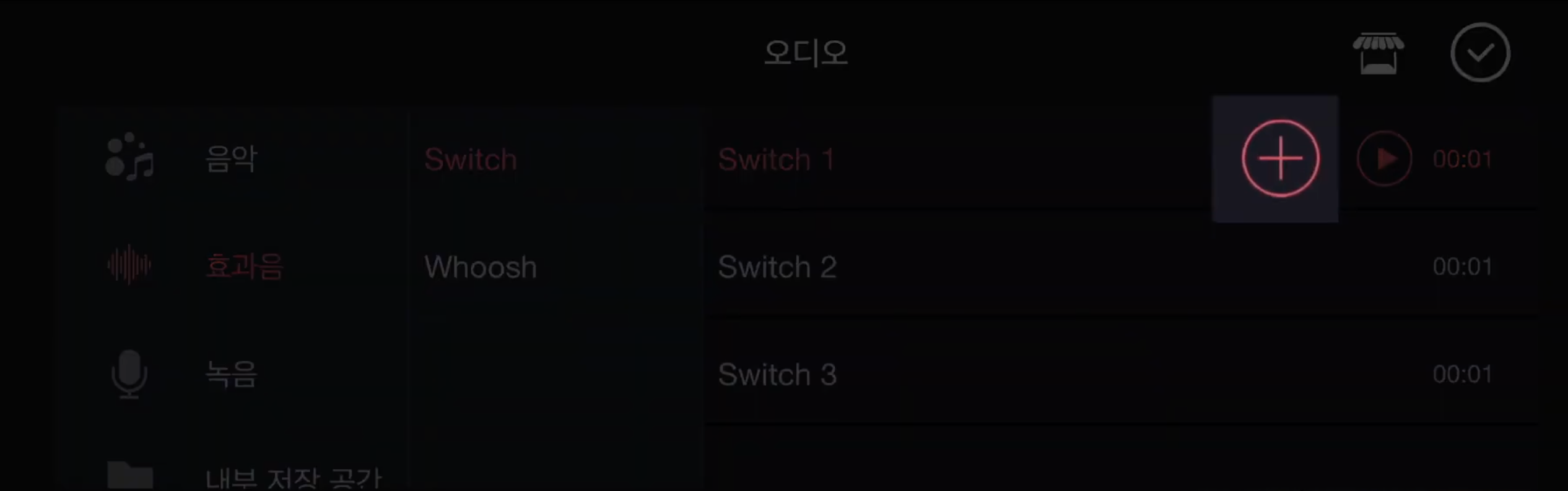 음악이나 효과음을 선택하신 다음 타임라인에 추가하기 위해서는 꼭 + 버튼을 선택하셔야 합니다.