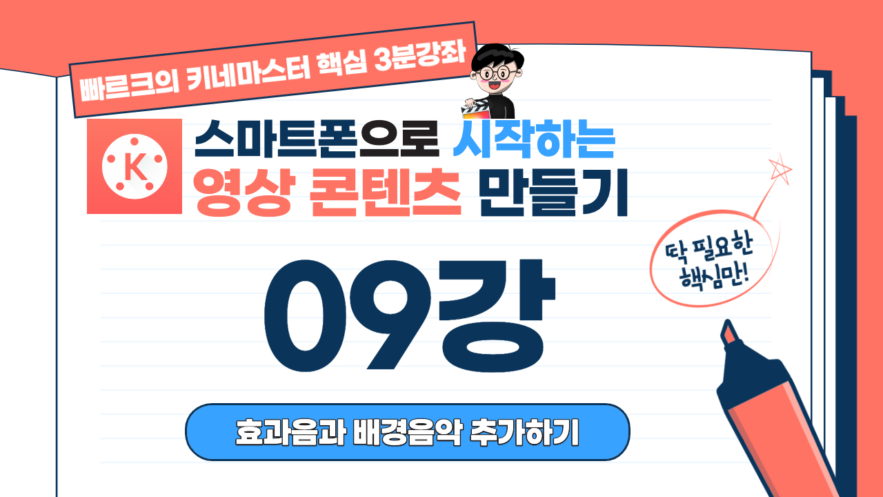 빠르크의 키네마스터 핵심 3분강좌 09 오디오 효과음 배경음악 추가하기