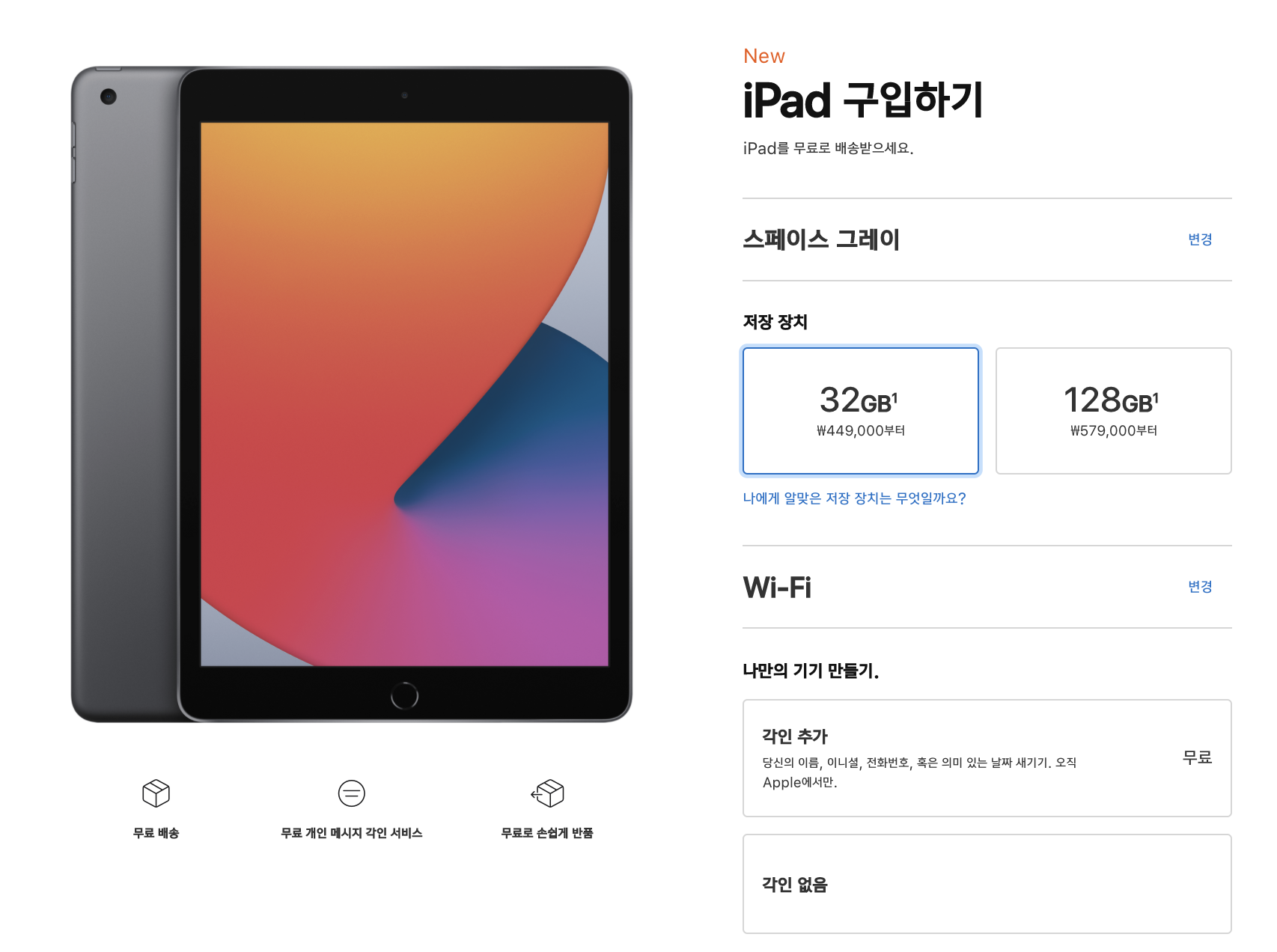 그럼 128기가 밖에 없는데 와이파이 모델은 579,000원 입니다.