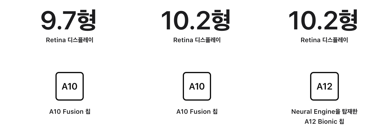 이전 아이패드 7세대가 6세대와 동일한 칩셋을 사용해서 옆그레이드란 비판을 들은 반면