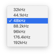 ⑩ Audio-Sample Rate(오디오-샘플레이트): 프로젝트의 오디오 샘플레이트를 선택합니다. 샘플레이트는 초당 신호가 측정되거나 샘플링되는 횟수를 뜻합니다. 샘플 속도가 높을수록 오디오 품질이 높아지며 파일 크기가 커집니다. 반대로 샘플 속도가 낮을수록 오디오 품질이 낮아지며 파일 크기도 작아집니다. 일반적으로 44.1kHz 나 48kHz를 선택합니다.
