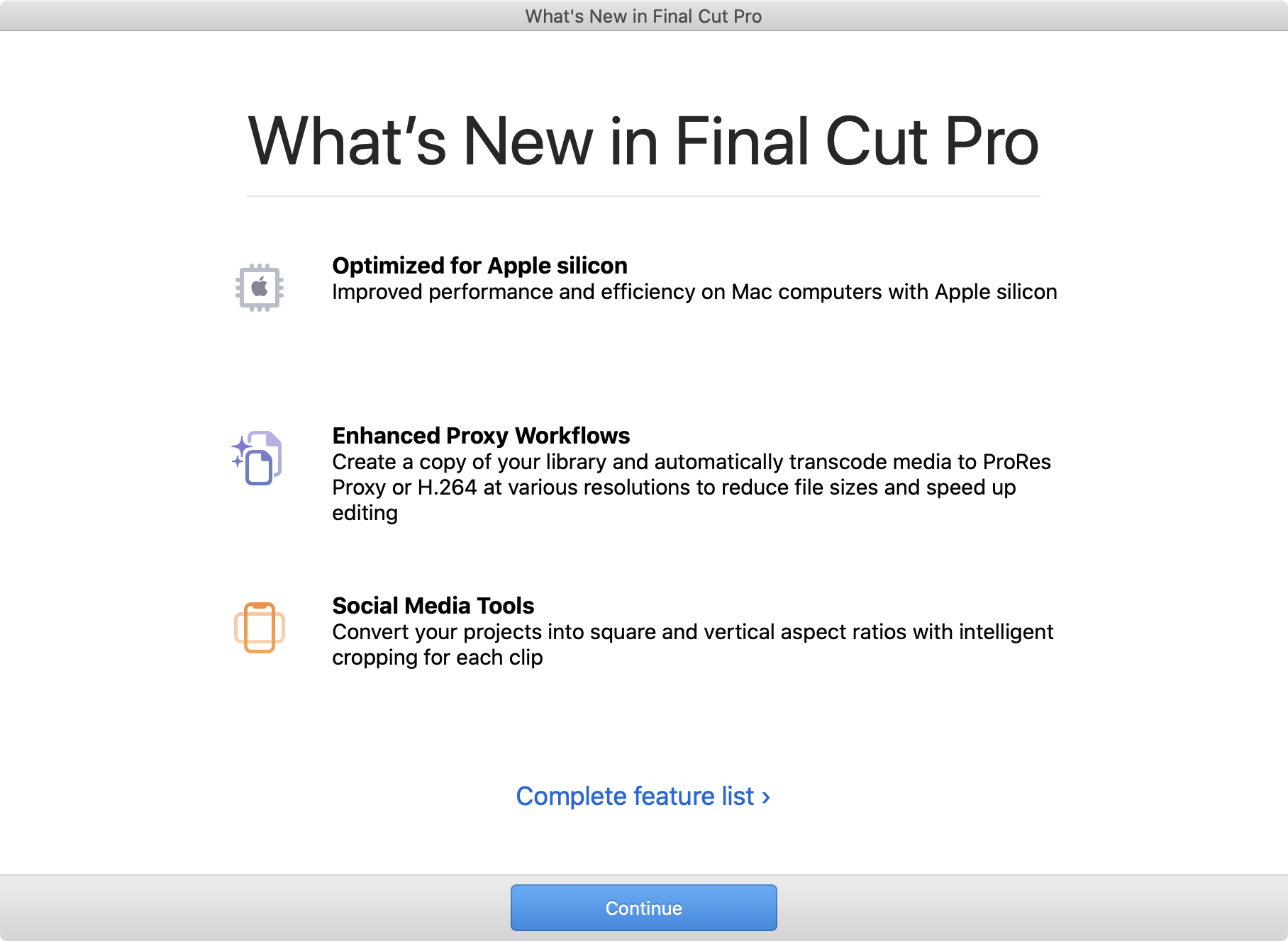 아무래도 새로운 M1 애플 실리콘에 최적화 된 부분이 이번 파이널컷프로 10.5의 가장 큰 특징이라고 볼 수 있습니다.