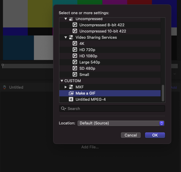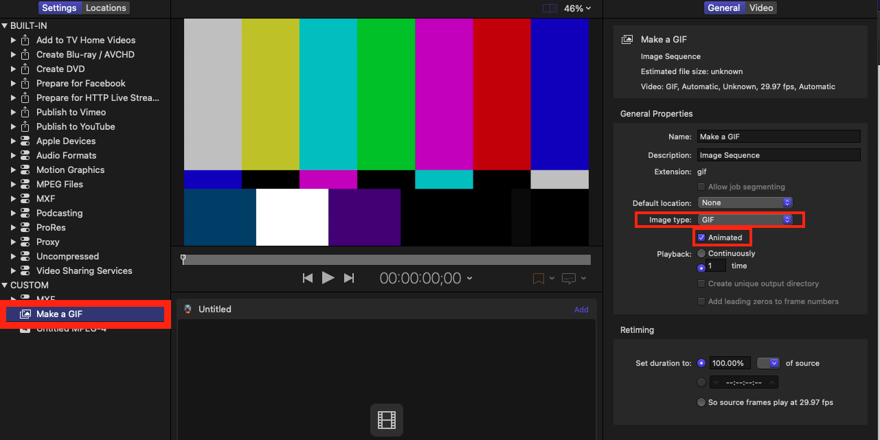 Create a GIF animated image from a video file in Apple Compressor