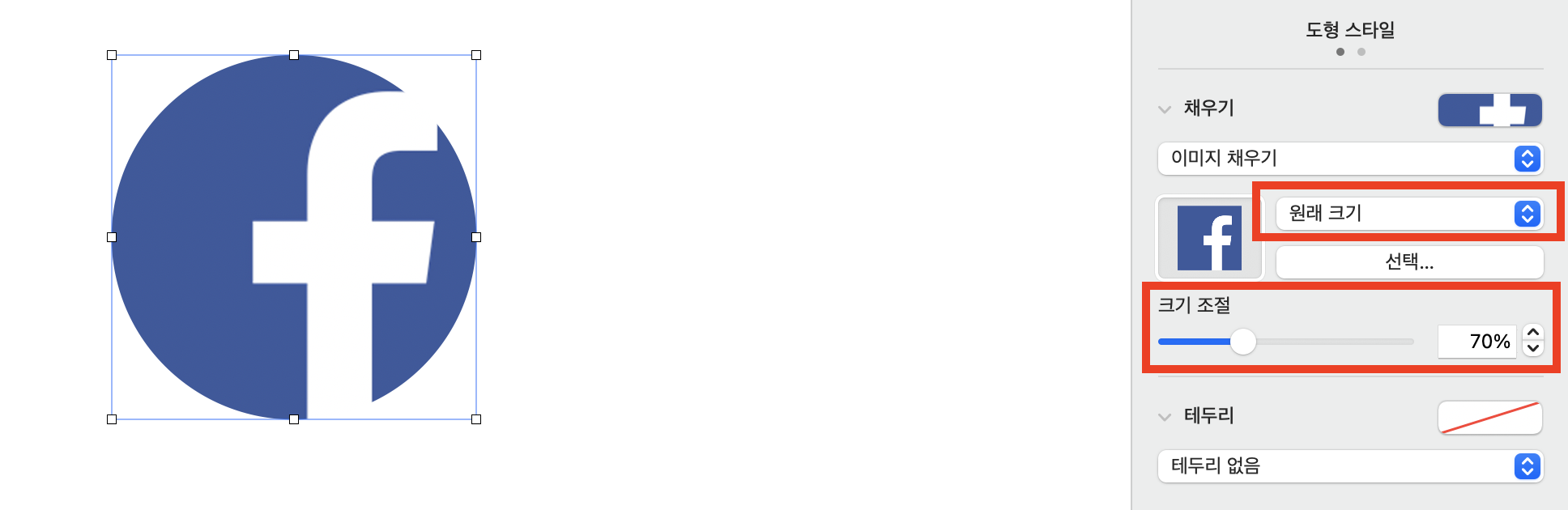 그럼에도 비율을 조정하고 싶을 때는 [원래 크기]로 변경한 후
