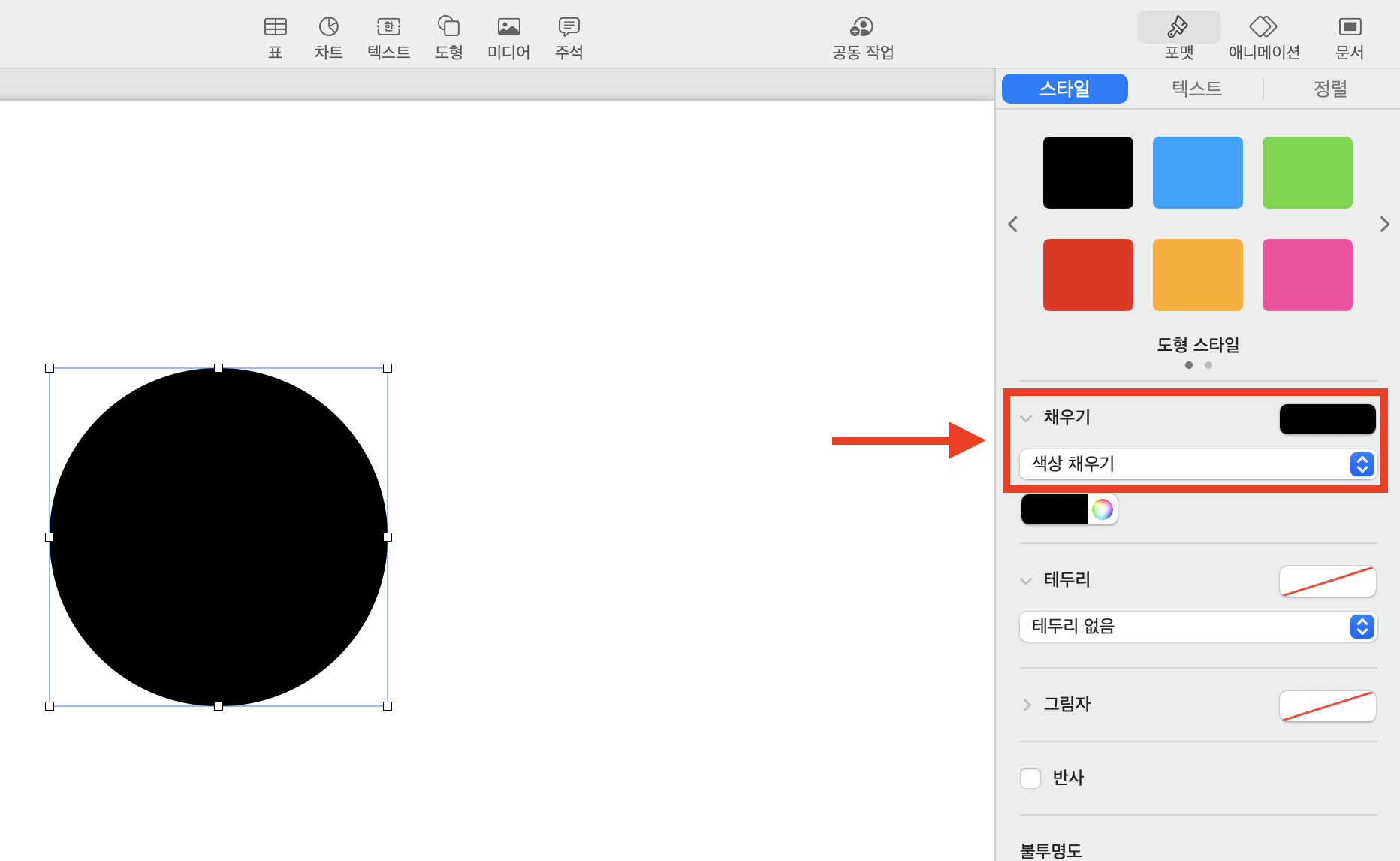 보통 기본값은 [색상 채우기]로 되어 있습니다.