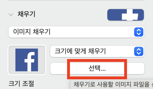 [이미지 채우기]를 클릭한 뒤 [선택]을 클릭하여
