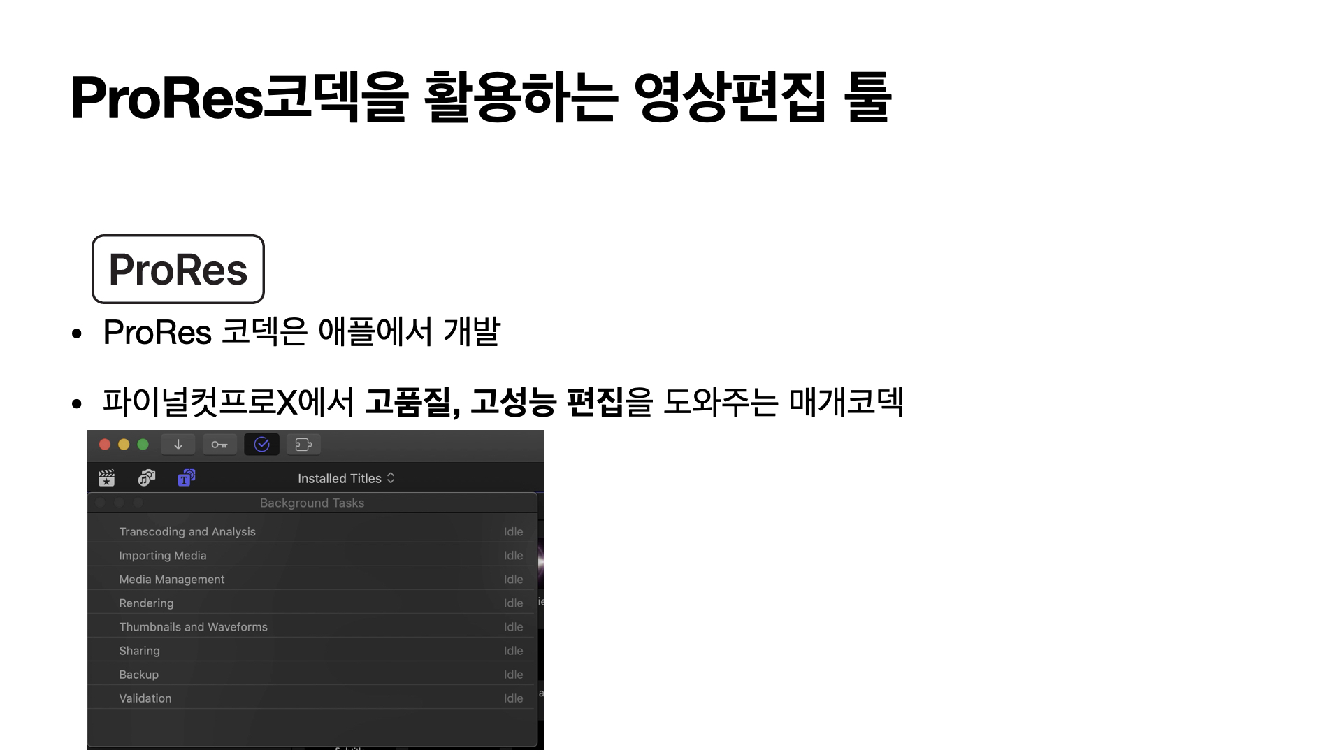 ProRes 코덱을 매개코덱으로 사용하는 파이널컷프로