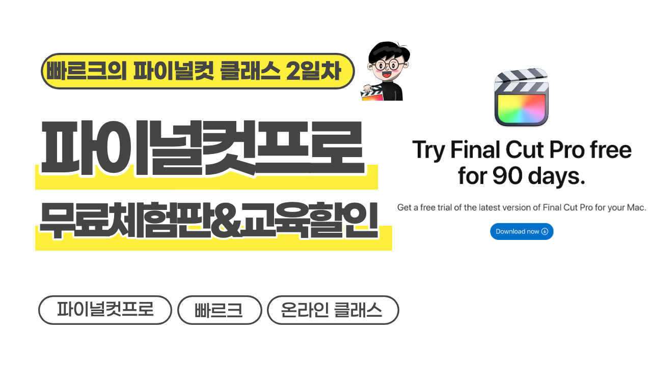 빠르크의 파이널컷프로 온라인클래스 2일차 "파이널컷프로 90일 무료체험판 & 교육할인 구입방법" 입니다.