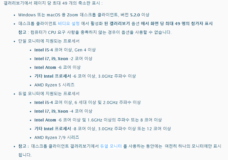 줌ZOOM 49명 갤러리 보기 최소 PC사양은?