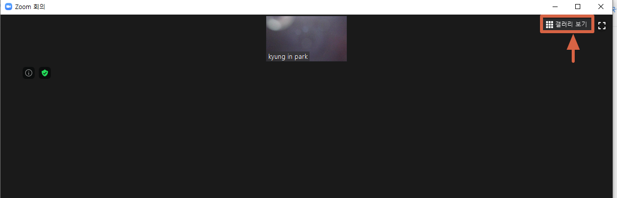 2명 이상이 참가한 줌 회의방 의 오른쪽 상단에 보시면 '발표자 보기/갤러리 보기' 옵션이 있습니다.