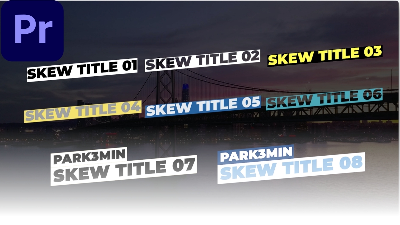 비스듬한 스타일의 프리미어프로 mogrt 자막 템플릿 8종