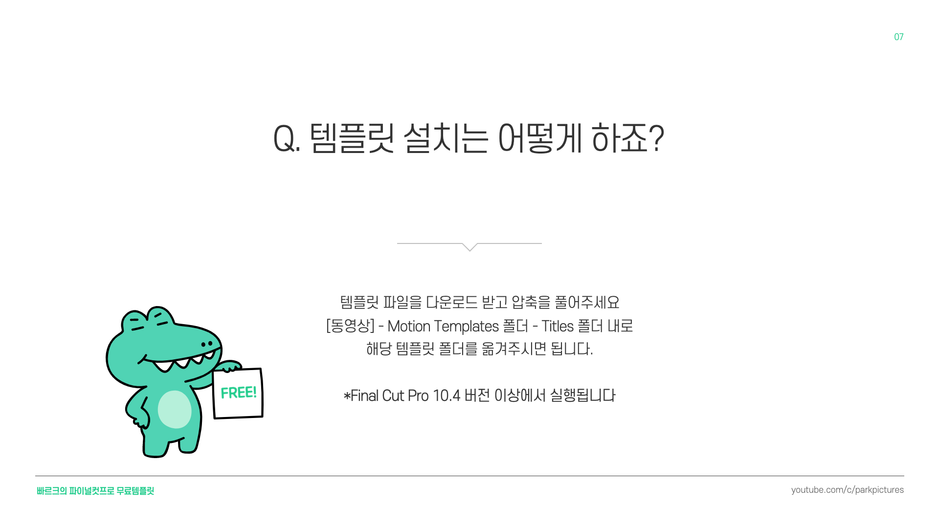 빠르크의 3분 강좌는 파이널컷프로X, 모션5, 프리미어프로, 애프터이펙트의 사용 방법 및