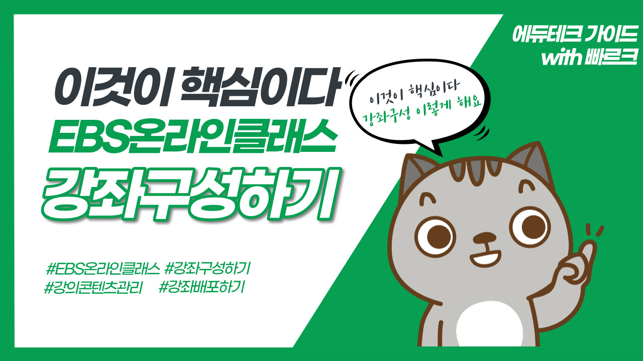 EBS 온라인클래스의 새로 바뀐 기능 중 강의 콘텐츠 관리와 강좌구성에 대해 익혀보겠습니다.