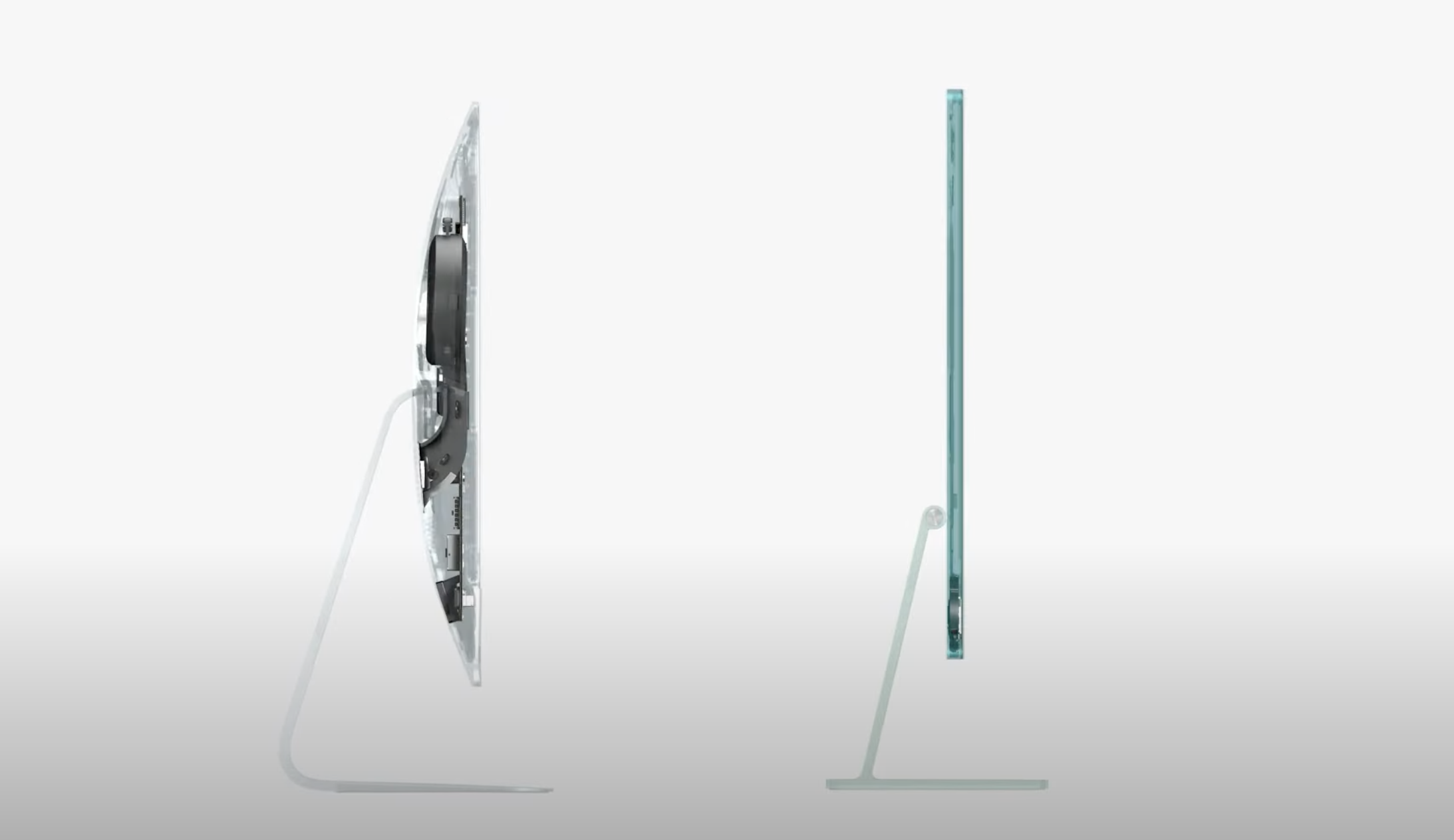 M1 프로세서는 아이맥의 기존 디자인을 확 바꾸었습니다.