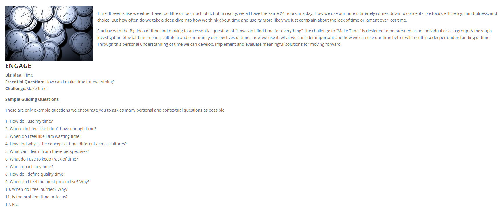학급, 수업, 심지어 개별 학생의 관심사와 요구에 따라 어느 단계에서든 변화를 줄 수 있도록 유연하게 설계되었습니다. 도전 기반 학습은 교사가 이미 하고 있는 일에 대해 틀 또는 구조를 제공하고자 합니다. 학습자의 흥미와 참여, 열정을 참여와 공유를 쉽게 하는 기술의 최고 요소들과 융합하는 한가지 방법이라고 생각하면 됩니다.