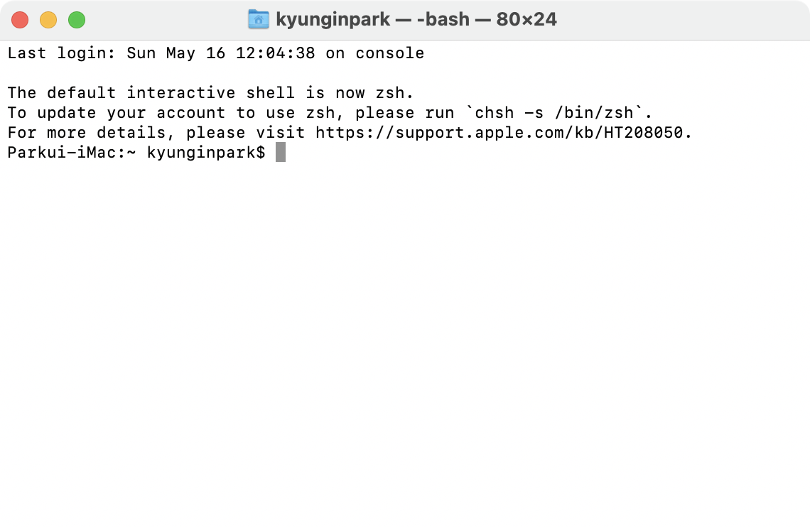 맥에서는 '터미널'을 이용해 명령어를 입력할 수 있습니다.