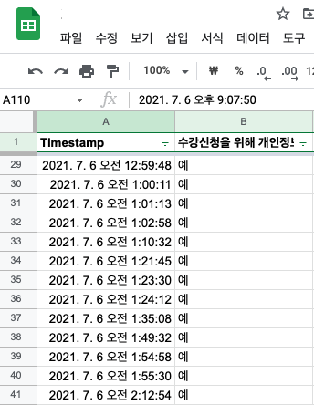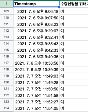혹시라도 구글 설문폼을 이용하던 중 스프레드시트의 타임스탬프가 이상하다면