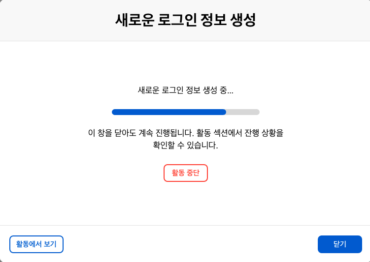 새로운 로그인 정보를 생성하고 있습니다.
