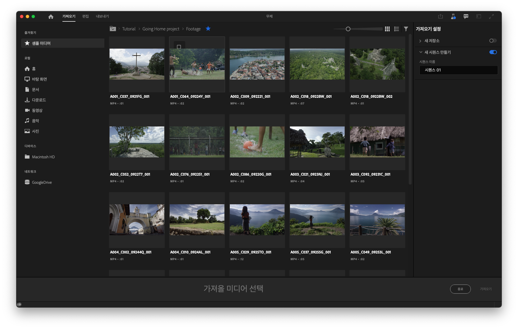 또한 프리미어프로 2022 버전에서는 새로 바뀌는 '가져오기(import)' 인터페이스와 함께