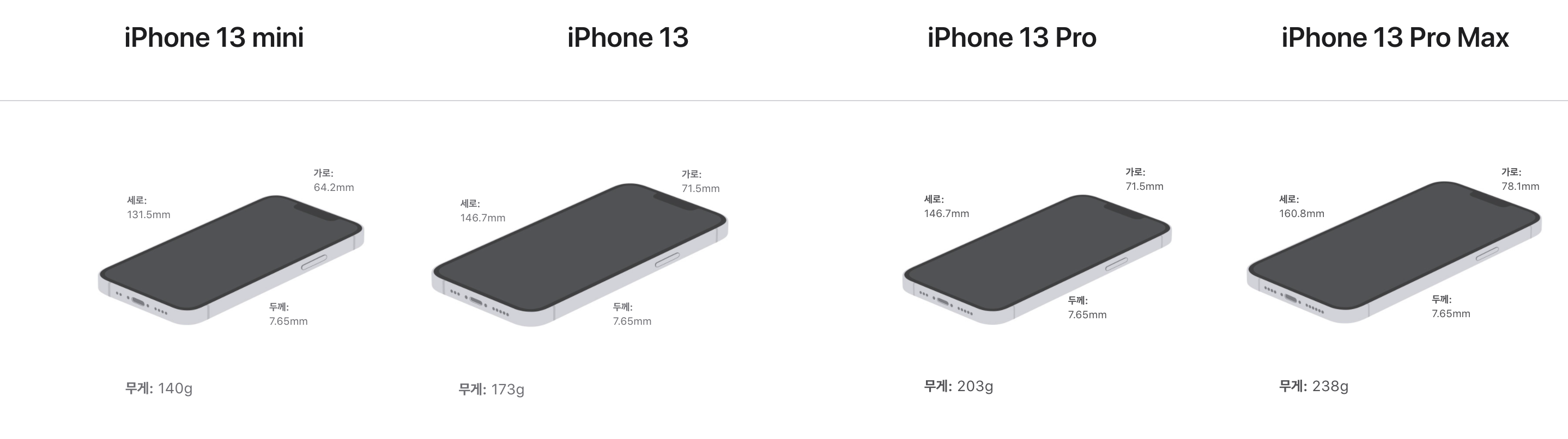 아이폰 13 미니, 아이폰 13, 아이폰 13 프로, 아이폰 13 프로 맥스의 무게는?