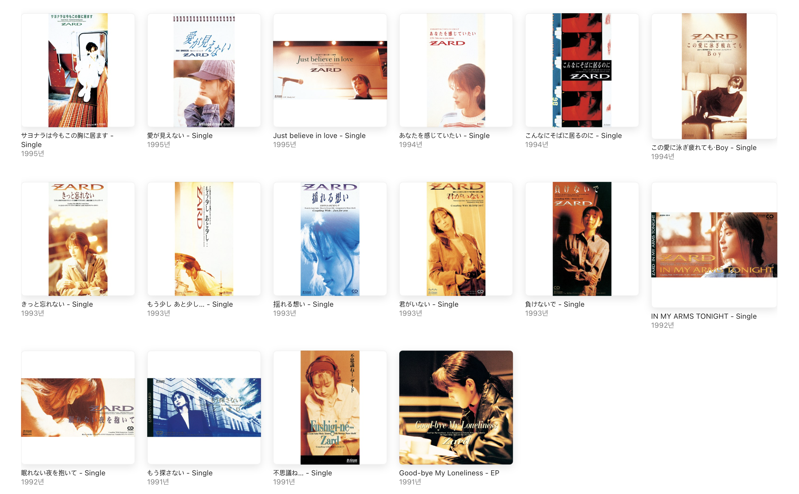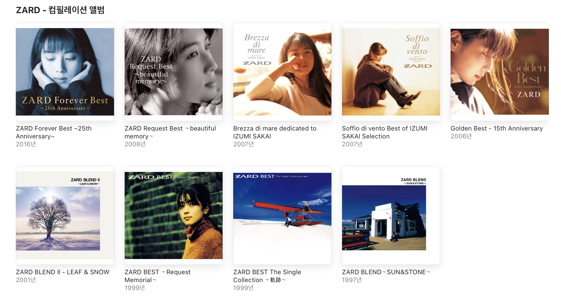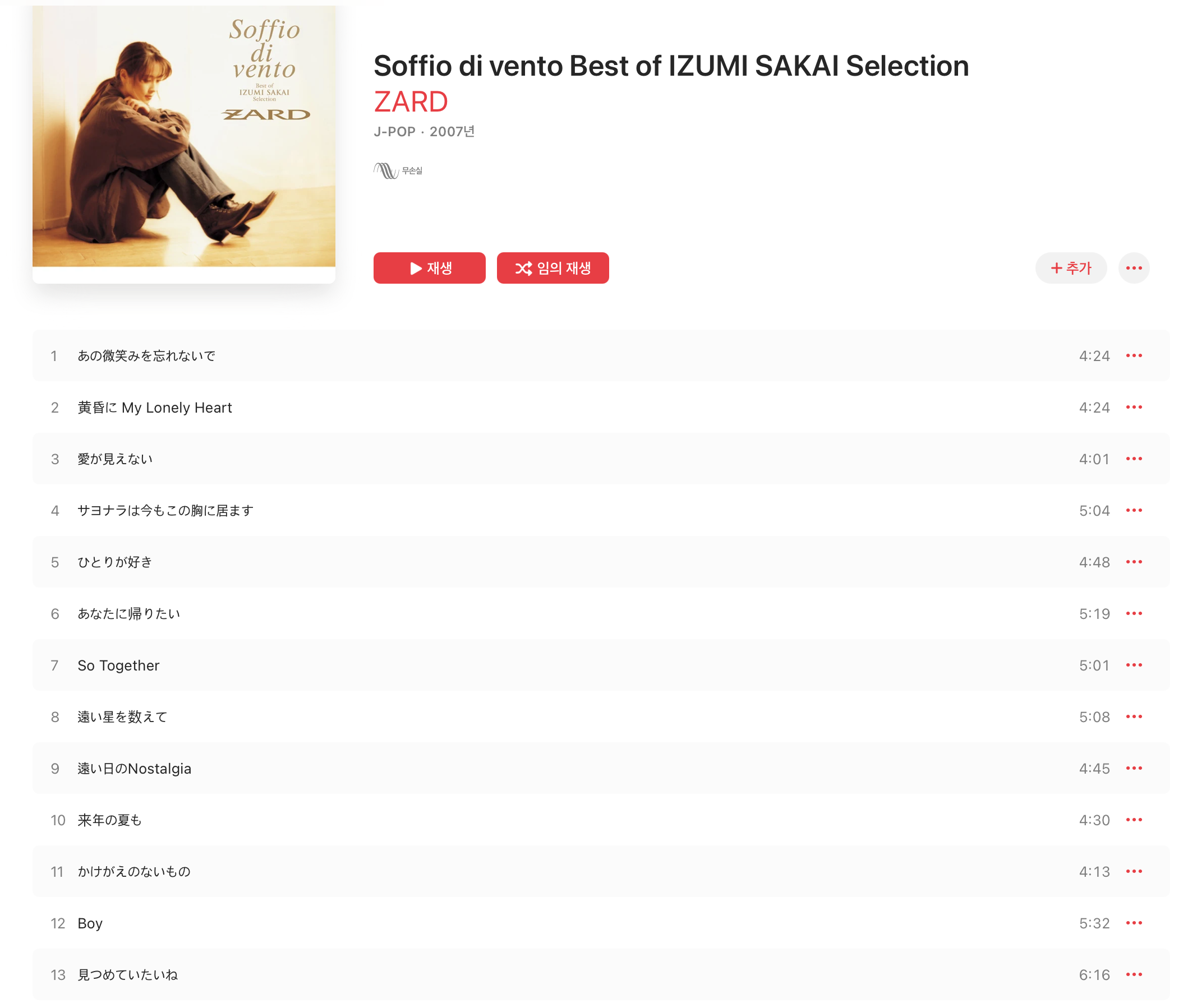 오늘은 애플 뮤직에 올라온 자드(ZARD) 앨범을 리뷰해보고 어떤 구성으로 되어 있는지 살펴보려 합니다.